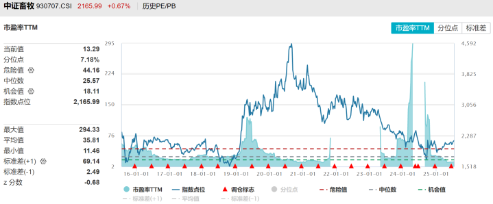 像这种成本控制好的龙头,在行业未来稳态下盈利能力也就更可持续,修复起来有支撑。目前中证畜牧的最新市盈率才13%,比过去10年93%的时间都便宜,板块下一阶段的上升空间还是很大的。