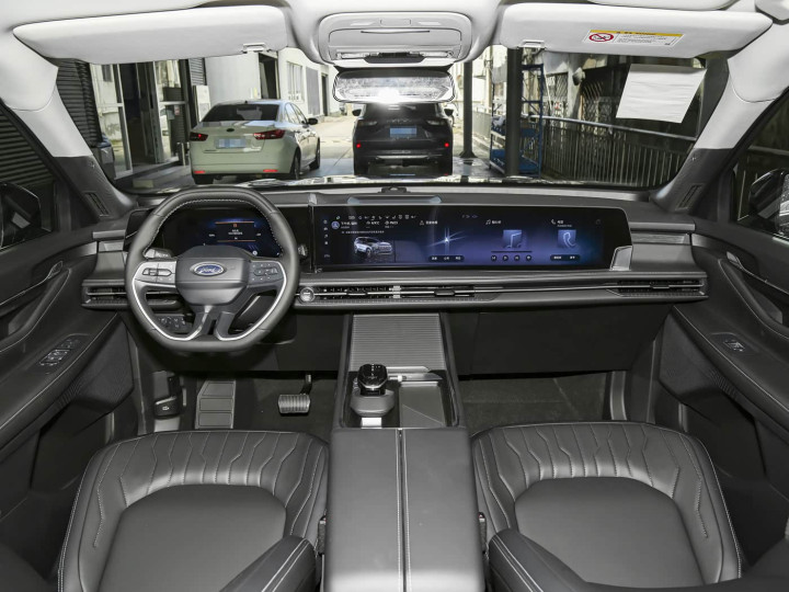 进入车内,内饰沿用12.3英寸全液晶仪表+27英寸大连屏的组合,搭配福特SYNC+2.0智行互联系统,支持AI语音交互、实时导航等功能,操作流畅且科技感十足。混动版旗舰型配备半苯胺全粒面真皮座椅,触感细腻透气,缝线设计源自奢侈品美学,豪华质感媲美百万级车型,中配以上车型新增方向盘加热与二排座椅加热,冬季出行更具舒适性。空间表现是核心优势,提供2+3+2与2+2+3两种七座布局,二排座椅配备190mm超长滑轨,可一键切换多种坐姿模式,过道宽度充裕,方便乘客进出第三排。身高178cm的乘客坐进第三排,腿部仍有一拳余量,彻底摆脱“小板凳”尴尬。后备厢基础容积可观,三排放倒后可容纳全家露营装备,二三排全平放倒后拓展空间充足,兼顾日常通勤与长途出行需求。